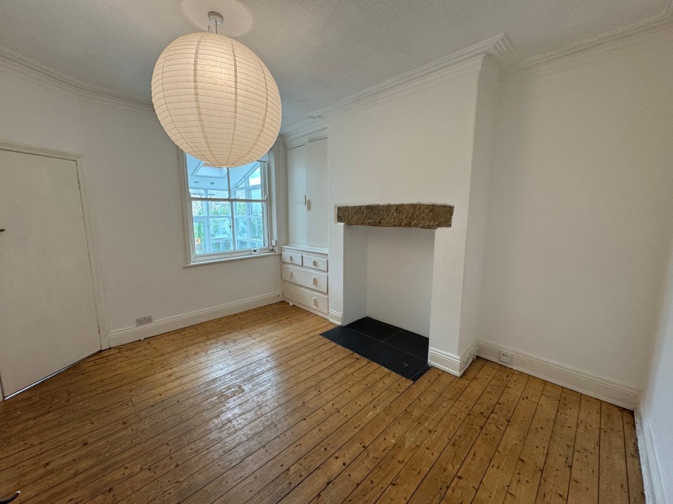 Polished floor boards, recessed fireplace, radiator and door to:-
