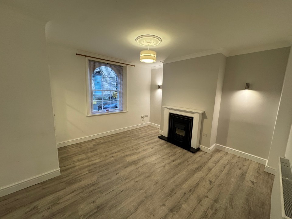 4.88m x 4.27m (16' 0" x 14' 0") Maximum - Laminate flooring continues, feature fireplace with electric fire, attractive arched window, radiator