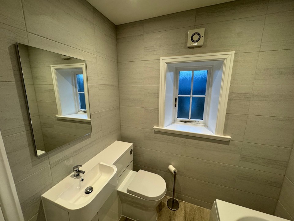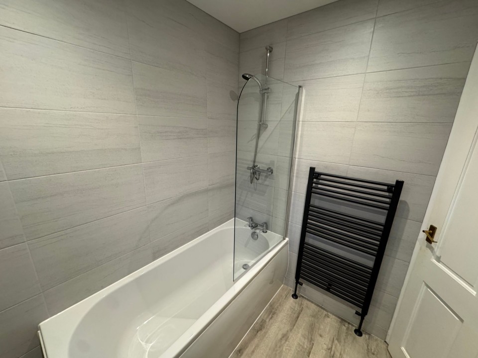 Fully tiled to the walls, laminate flooring, towel radiator, spotlights and extractor fan.